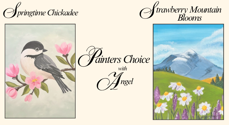 Celebrate the season with this fresh acrylic painting of a chickadee perched on a blossoming branch, or Strawberry Mountain Blooms. Participants will be guided step by step while learning simple techniques for layering, shading, and adding soft spring details. This relaxed class is beginner-friendly and suitable for all skill levels.